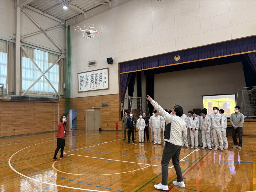 ドローンや3D測量アプリ、AR技術を使った迷路脱出ゲームなどを通じ、生徒の皆さんにICT(情報通信技術)を体験していただきました。